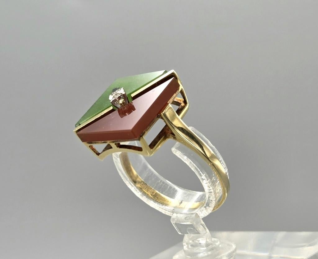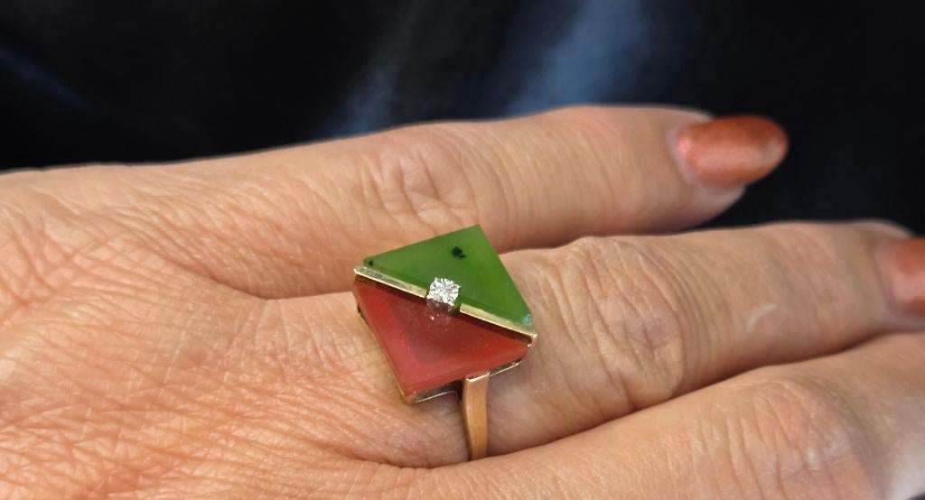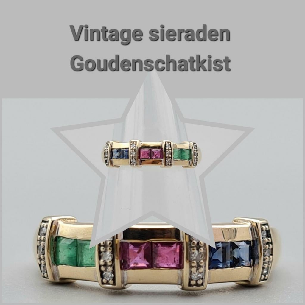 Gouden Vintage ketting robijn, smaragd en diamant. 2026/142.