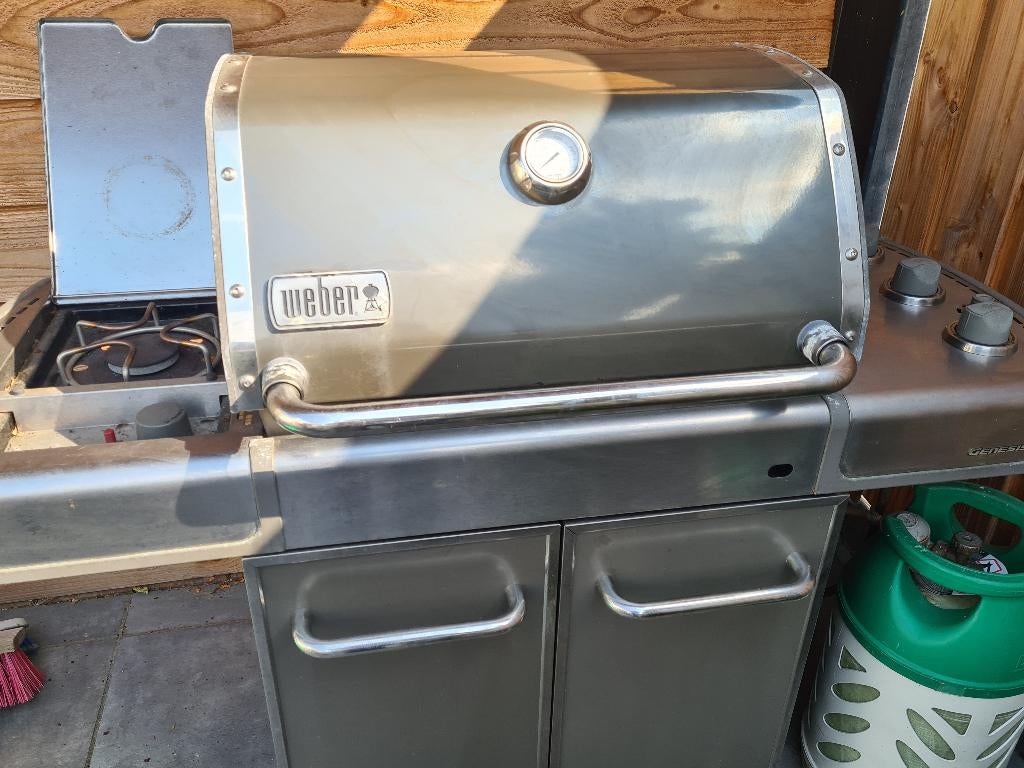 Nog goed werkende weber genisis gas barbecue. Dit betreft de speciale editie met de roestvrij stalen roosters.
