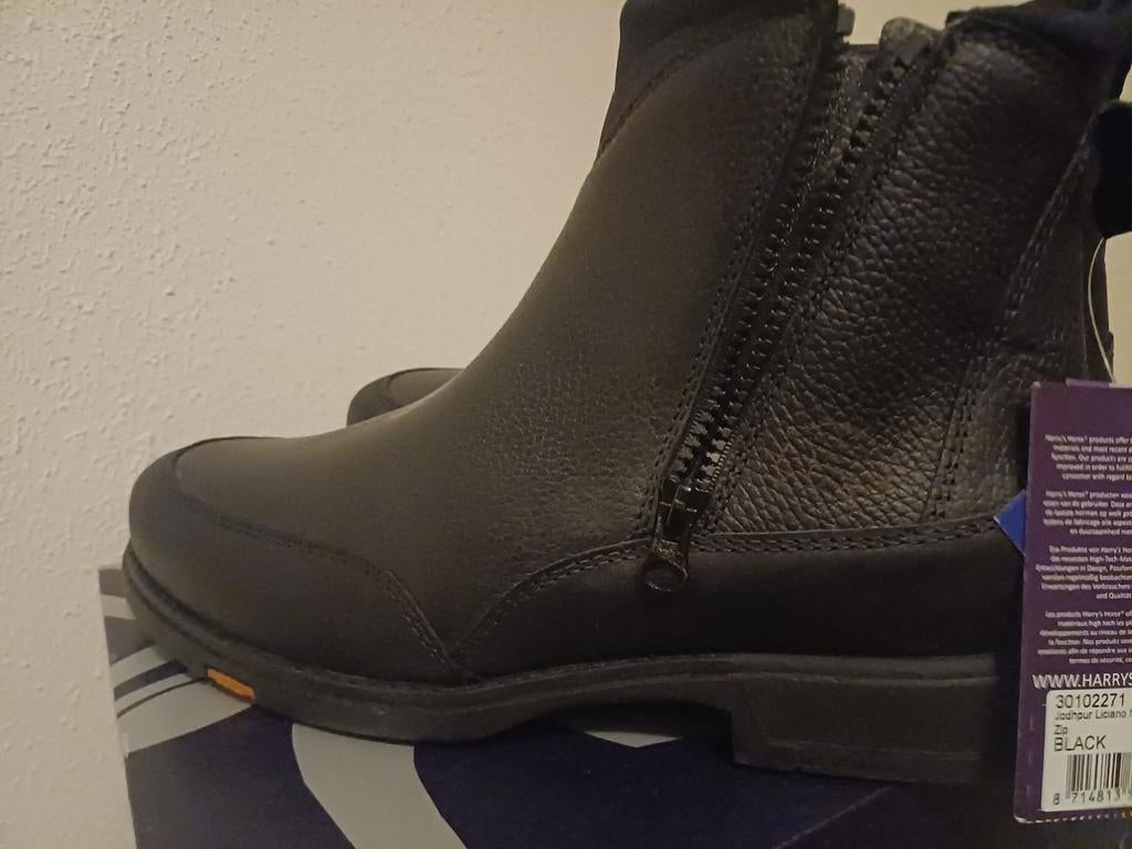 Compleet set joppers nieuw, leer maat 43 met doos rijbroek xl cap verstelbaar doos, hoes alles in zweer goede staat