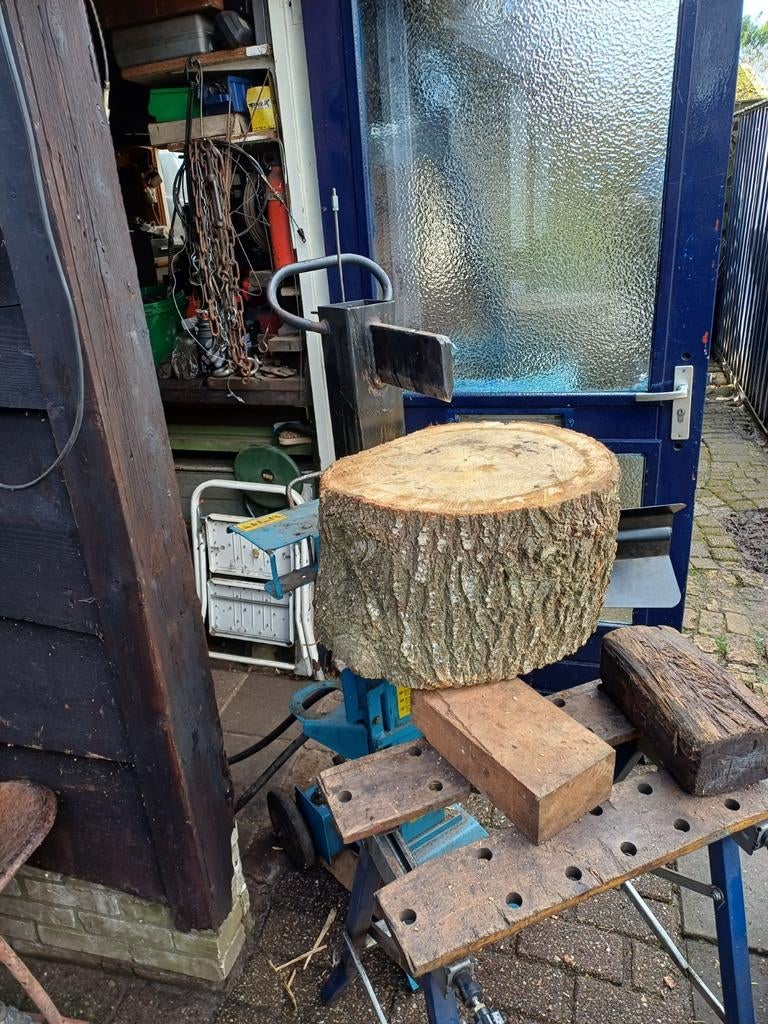 Te koop een goedwerkende en onderhouden kloofmachine voor aan de trekker of hydraulische unit kloofkracht 6 ton. Klooflengte 52 cm inclusief slangen en snelsluiters
