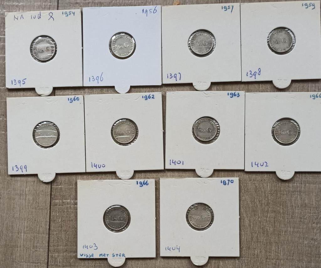 Complete set zilveren dubbeltjes nederlandse antillen juliana 1954-1970.