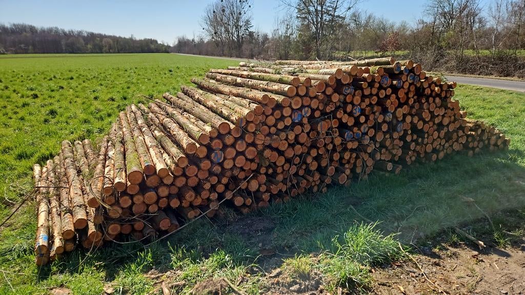 Boomstammen brandhout, es, eik, beuk, iep, esdoorn, els boomstammen brandhout te koop. Het meeste is essen, zit soms wat esdoorn, eik, beuk, iep, els en berk bij in. Diameters: 15-80cm wordt geleverd