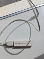 Dit is een nintendo wi-fi usb connector. Het is een wit apparaatje met een usb-aansluiting aan de ene kant en een kabel aan de andere kant. Op de zijkant staat "nintendo wi-fi usb connector"