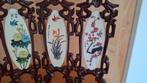 Conditie gaaf, geen beschadigingen hoogte 24,5 cm breedte 33 cm mooi vierdelig chinese kamerscherm met handgeschilderd plakken in de houten panelen. Zie voor een goede indruk de foto's. De origine