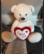 Een grote, zachte knuffelbeer met een hartvormig kussen. Ideaal als cadeau voor valentijnsdag, een verjaardag, of gewoon om iemand te laten weten dat je om ze geeft. De beer is in goede staat en klaar