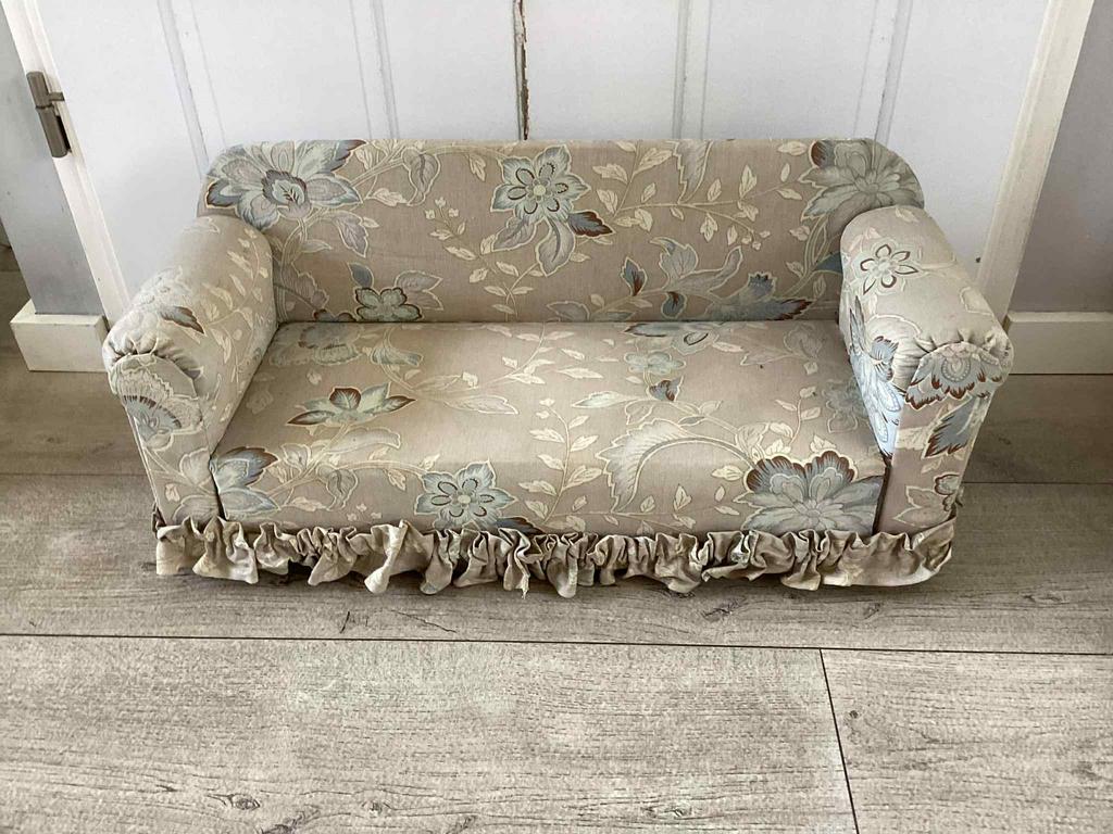 Brocante stoffen bankje poppenbank