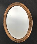 Ovale antieke lijst met in facet geslepen spiegel. De lijst is goudkleurig en versierd met roosjes. Op een paar plaatsen is de lijst beschadigd. De afmetingen van de lijst zijn 45 x 36 cm. De afmeting