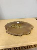 Een prachtige agaat schijf schaal, perfect voor het bewaren van sieraden of andere kleine items. De schaal is gemaakt van natuurli