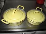 Of deze pannen nog geschikt zijn om te koken weet ik niet, is aan de kijker om te beslissen. Geen merk, wel typenummer/afmeting op
