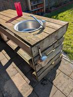 Wat een plezier hebben wij aan deze keuken beleefd. Met een emmer water en zand goed voor uren speelplezier! Hij is wel gebruikt, niet rot dus kan nog jaren mee. Met een echte (neppe) kraan en gootste