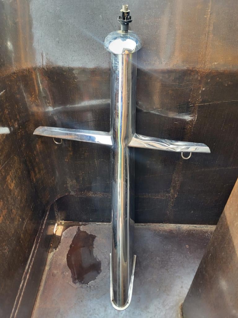 Beschadigd rvs motormast bovenop mogelijkheid voor een toplicht. Foto 1 tot 4 is de mast die te koop is. 5 En 6 hoe hij hoort te zijn 120 hoog en 80 breed