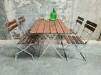 Aangeboden: vintage klaptafel + 4 klapstoelen super geleefde set rechtstreeks vanaf een terras in oost-duitsland. Hardhout: gaat