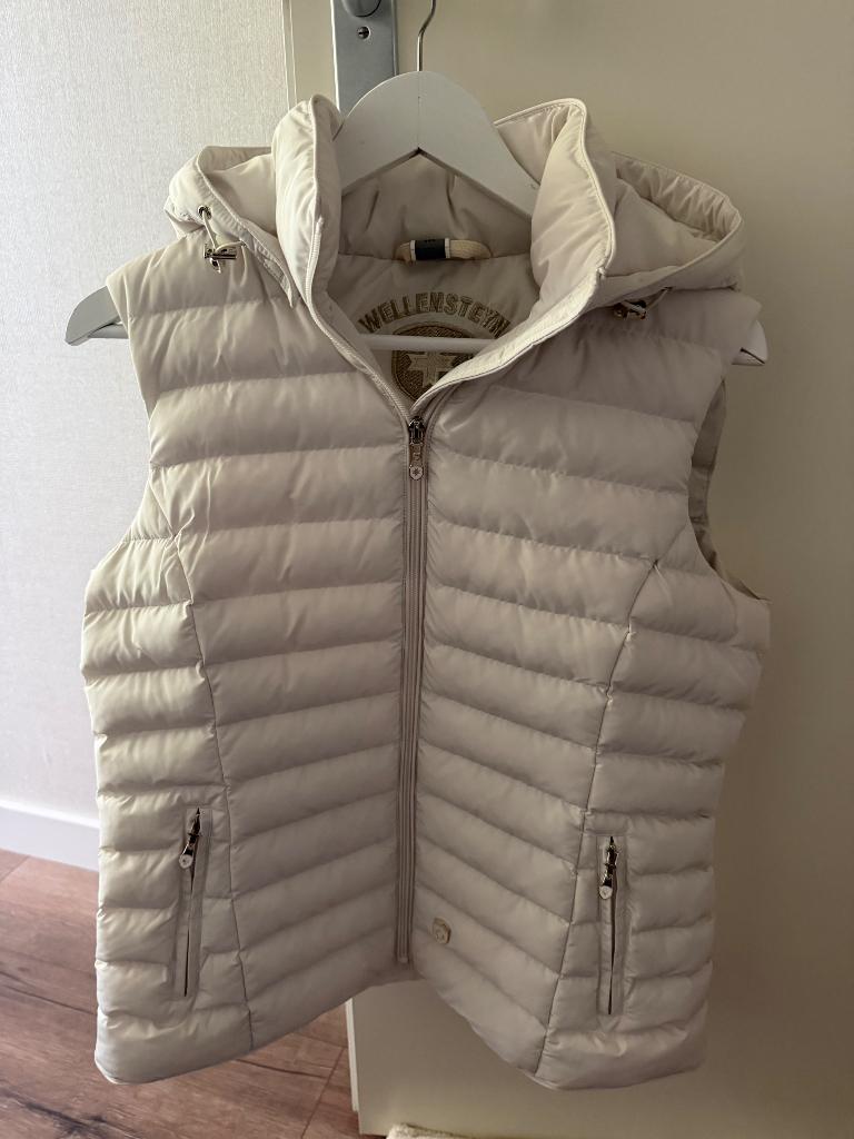 Zeer mooie nieuwe bodywarmer van wellenstein in de maat 40 kleur is heel licht beige / zand