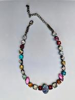 Deze ketting heeft verschillende gekleurde glazen stenen en een abalone steen in het midden. De ketting is verstelbaar.