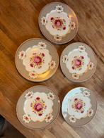 Leuke gebaksbordjes. Omdat 2 een chipje eraf hebben is de prijs voor 3 maar stuur ik alle 5 op. Vaste prijs.