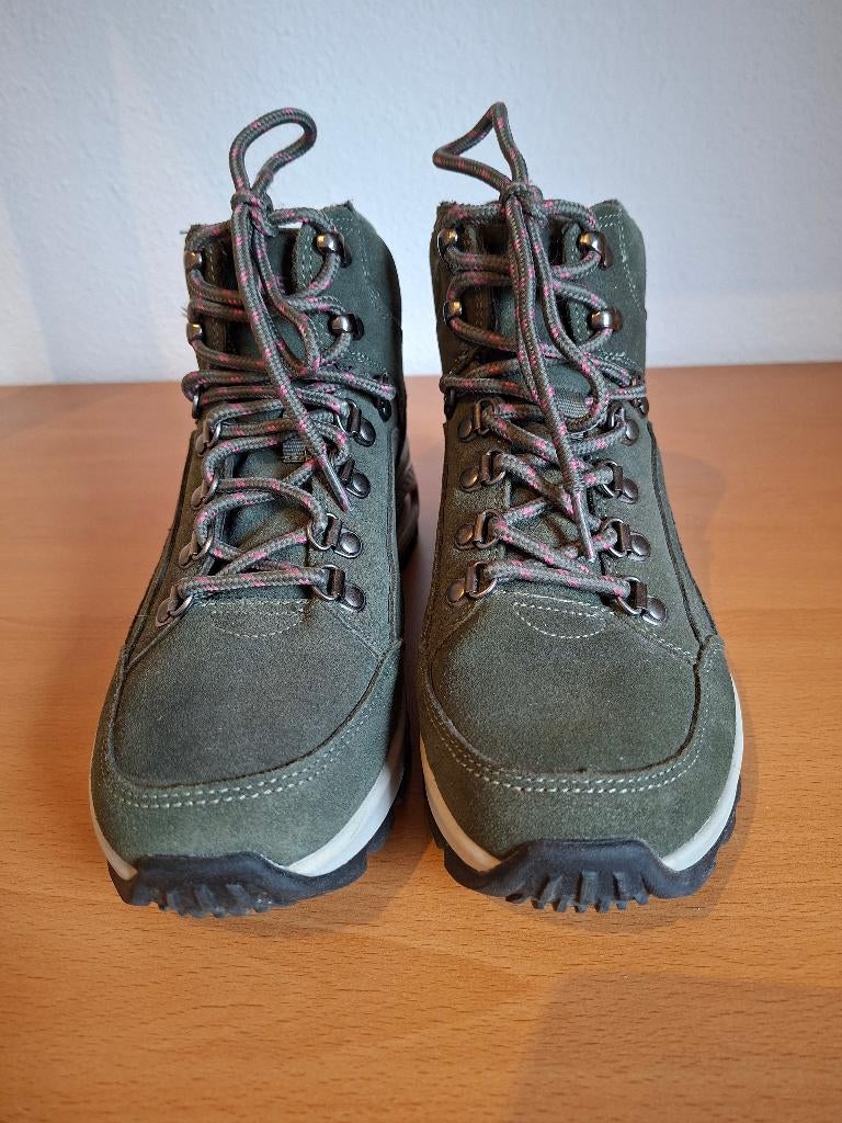 Wegens steunzolen kan ik ze niet aan. Kleur: olijfgroen materiaal:leer incl extra veters ik heb ze ook in het zwart bieden excl verzendkosten