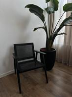 Zwarte stoel met rotan/webbing. Heeft wat gebruikerssporen. In 2021 aangeschaft t.w.v. €159,- mag voor een leuke prijsje weg.