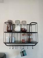 Metalen keuken rek, mokken rek haakjes en legplanken, volledig zwart metaal