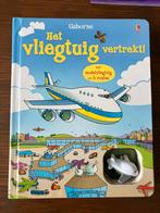Leuk boek 'het vliegtuig vertrekt!' met een opwindbaar vliegtuig. Het boek bevat 3 routes die het vliegtuig kan afleggen.