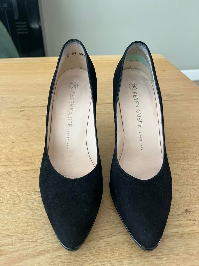 Peter kaiser zwart suede pumps. Zgan. Hakkken 7 cm. Eur 35. Maat 37 (4). Maar: mijn vrouw heeft maat 38 in het algemeen en past deze schoenen prima maar de hakken zijn iets te hoog voor haar.