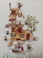 Familie muis geborduurd blank houten lijst met ophanghaakje afmeting: 46x59