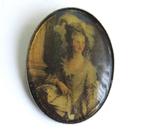 Romantische cabochon glazen broche in metalen frame.