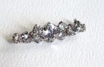 Leuke verzilverde broche met heldere kristallen.
