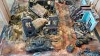 Gedetailleerd diorama van een oorlogssituatie in normandie met tanks, voertuigen en figuren. De schaal is 1:32 en 1:35 en het form