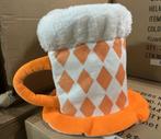 Leuke bierpul muts in de kleuren oranje en wit, perfect voor carnaval of andere feestelijke gelegenheden. Netjes per stuk in folie verpakt. Deze hoed is in de vorm van een bierpul en is gemaakt van za