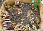 Diverse struikjes in pot voor 3 per stuk. De krat bevat vlinderstruik,broodboom aucuba, verberne en spierstruik spirea. Tevens hazelnoten ,walnoten en tamme kastanje te koop.