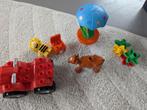 Grote verzameling duplo, inclusief een treinrails met wissels en spoorboom. Diverse onderplaten en een grote hoeveelheid losse duplo blokken. De set is gebruikt, maar in goede staat.