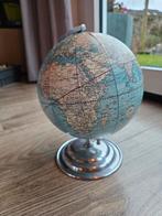 Mooie 12 inch wereldbol / globe met een reproductie van een kaart uit 1921 (weber costello). Op sommige plekken laten de opgeplakte kaartdelen los, en aan een kant is hij licht verkleurd. Verder draai