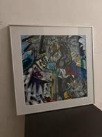 Schilderij 'ridder te paard' van cees landsaat (1948 - 2007) graficus / beeldhouwer / schilder abstract - felle kleuren - acryl op papier / board afm. Afbeelding: 47 x 47 cm / incl. Passe p. E