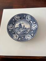Prachtig delfts blauw wandbord met een gedetailleerde afbeelding van een molen en bloemmotieven. Dit decoratieve bord is een mooie
