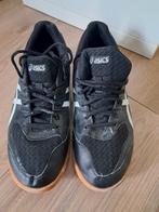Zwarte asics sportschoenen met witte strepen en een lichte zool. Geschikt voor binnen gebruik. Maat 41,5. Alleen ophalen