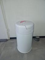 Luier emmer metaal wit 52 cm hoog doorsnede 28 cm speciale, eerste klepje luier er in, sluiten, druk tweede klepje naar beneden, k