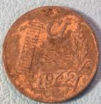 Een oude nederlandse munt uit 1942. De staat is gebruikt, maar de details zijn nog zichtbaar. Zie foto's voor details.