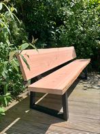 Te koop: mooie handgemaakte tuinbank 4cm dik douglas hout zwarte poten (eveneens douglas) geschuurd 200cm bij 40cm diep en 45cm hoog zitting iets onderuit voor een fijne zit ook leverbaar in 250cm. Ka