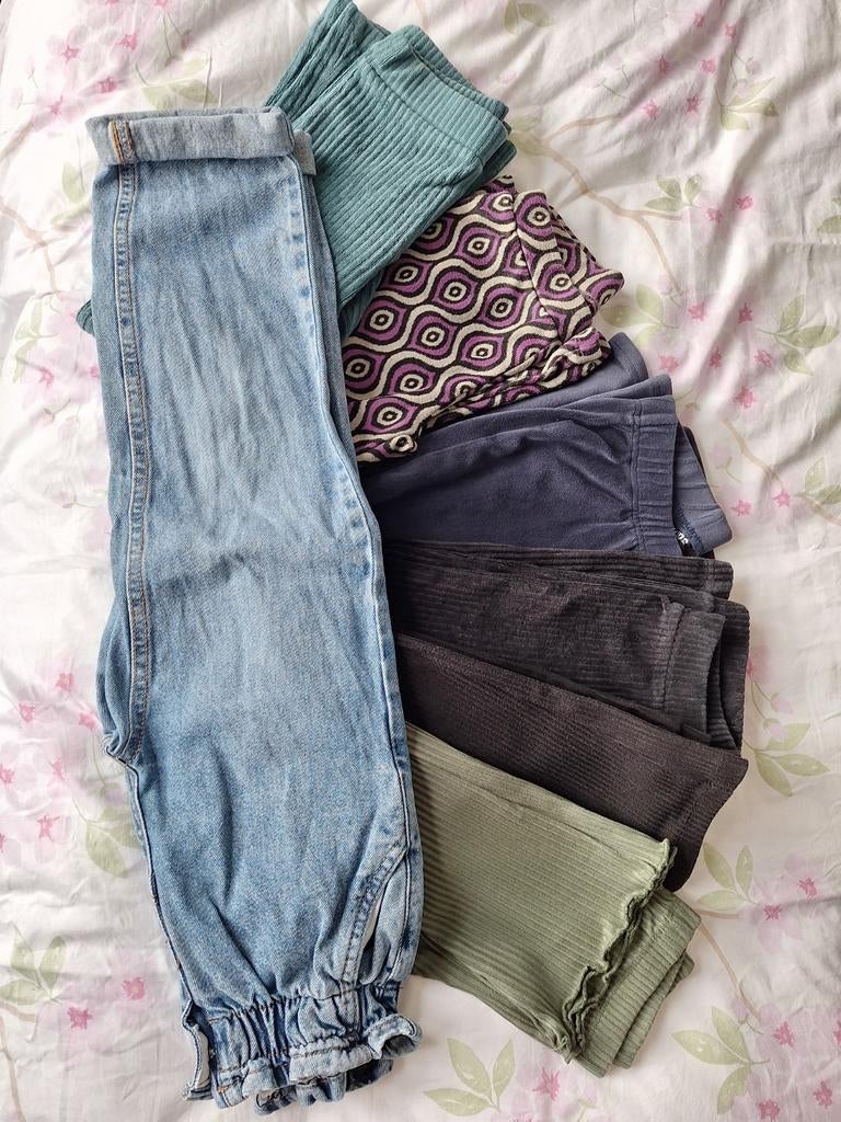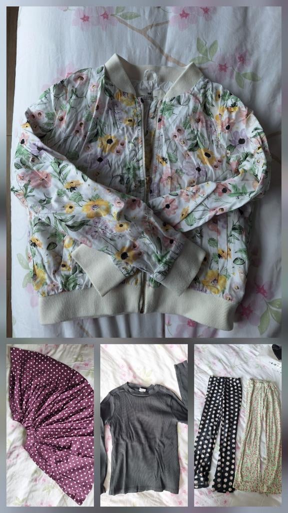 Leuk kledingpakket voor meisjes in maat 128/130, gedragen maar nog goed voor een volgende ronde. Voor iemand die het goed kan gebruiken, gratis op te halen. Het pakket bevat: 2 flared broeken (dun sto