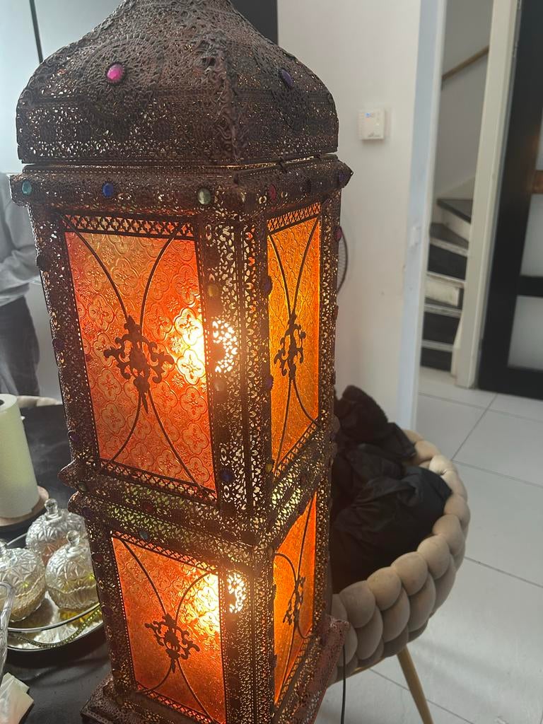 Oosterse vloerlamp / windlicht met gekleurd glas