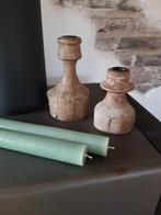 2 houten kandelaars. 1Van d. Kromhout .de kleine niet gemerkt. Mooi in brocant interieur. Sfeermakers. Grootste h. 17Cm. Kleinste h. 12Cm.. Ophalen of verz.kosten.koper op eigen risico heen betaalverz