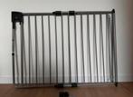 Grijs metalen traphekje van het merk a3. Is in een nette staat. Nieuwprijs €85,- eenvoudig door volwassenen met 1 hand te bedienen (twee knoppen indrukken) en ook makkelijk te monteren. Breedte i