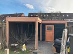 Overkapping met schuur in l vorm incl. Plaatsen door heel nederland. - Volledig van douglashout - epdm dakbedekking en hemelwaterafvoer - op betonpoeren - schuurdeur incl. Slot - afmeting 550x330 en 5