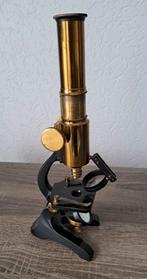 Oude microscoop combinatie van messing / gietijzer in origineel kistje en voorzien van extra lens. Geen verder accessoires, wat op