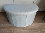 Nieuwe, halfronde poef in een lichte beige kleur. Perfect als extra zitplaats of voetenbankje. Het deksel is afneembaar waardoor j
