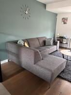 Een (linker) hoekbank kleur grijs. Kan een reinigingsbeurt gebruiken maar is verder nog prima. Maten zijn totale hoogte 80-82 cm (achterzijde), lengte hoek 202 cm en total breedte bank 273. Diepte zit