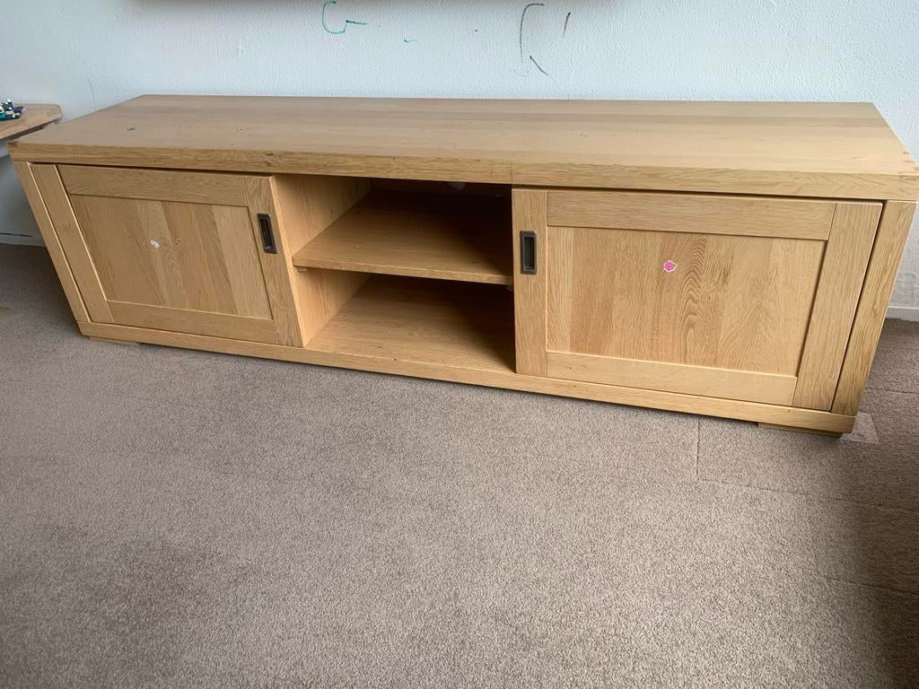 Eikenhouten TV-meubel met schuifdeuren en uitschuifplanken
