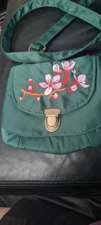 Mooie vintage schoudertas van het merk urban hipies. De tas is groen en heeft een prachtig bloemenborduurwerk. Perfect voor een vi