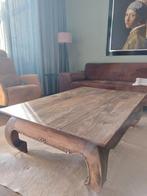Prachtige indonesische opium salontafel, gemaakt van massief teakhout. Deze unieke tafel is een echte blikvanger in elk interieur. Het robuuste ontwerp en de warme uitstraling van het teakhout zorgen