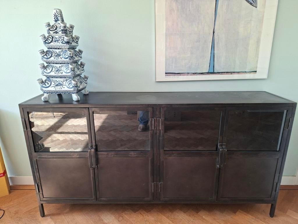 Mooie stalen dressoirkast carpino van pronto met glas in de deurtjes. Wonen. 4 Deurs. 90 X 180 x 40 cm. Lichte gebruikerssporen.